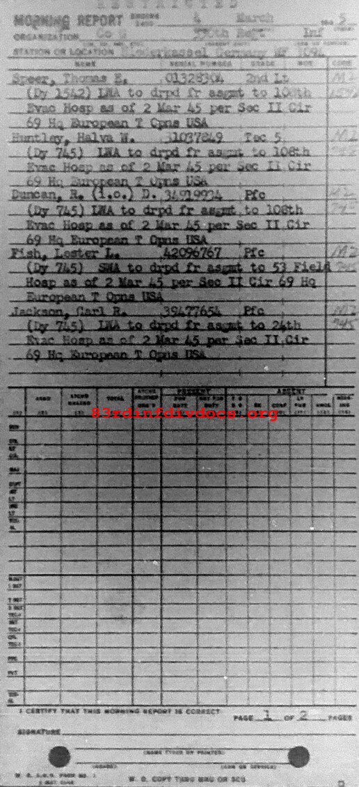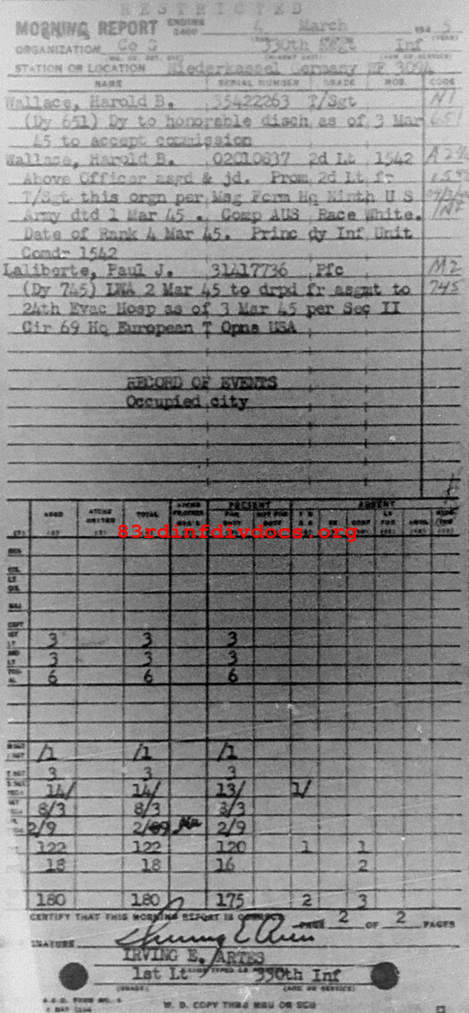 Morning report G/330 for March 4, 1945