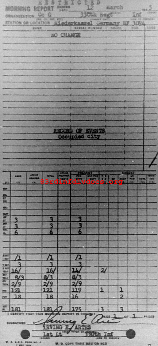Morning report G/330 for March 12, 1945