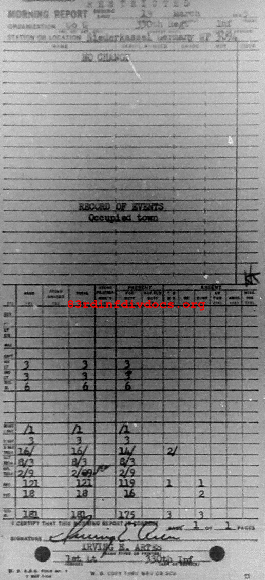 Morning report G/330 for March 13, 1945