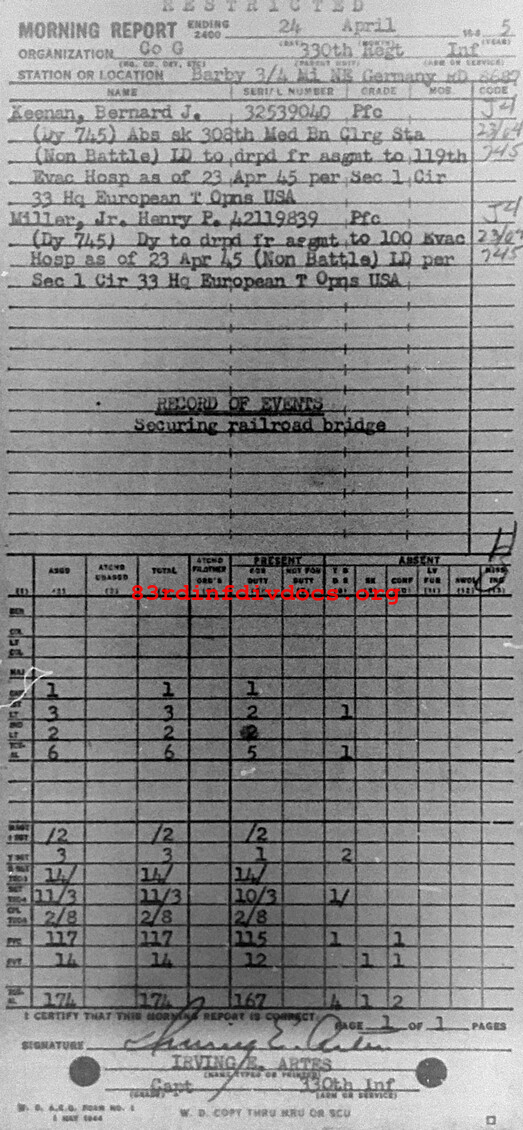 Morning report G/330 for April 24, 1945