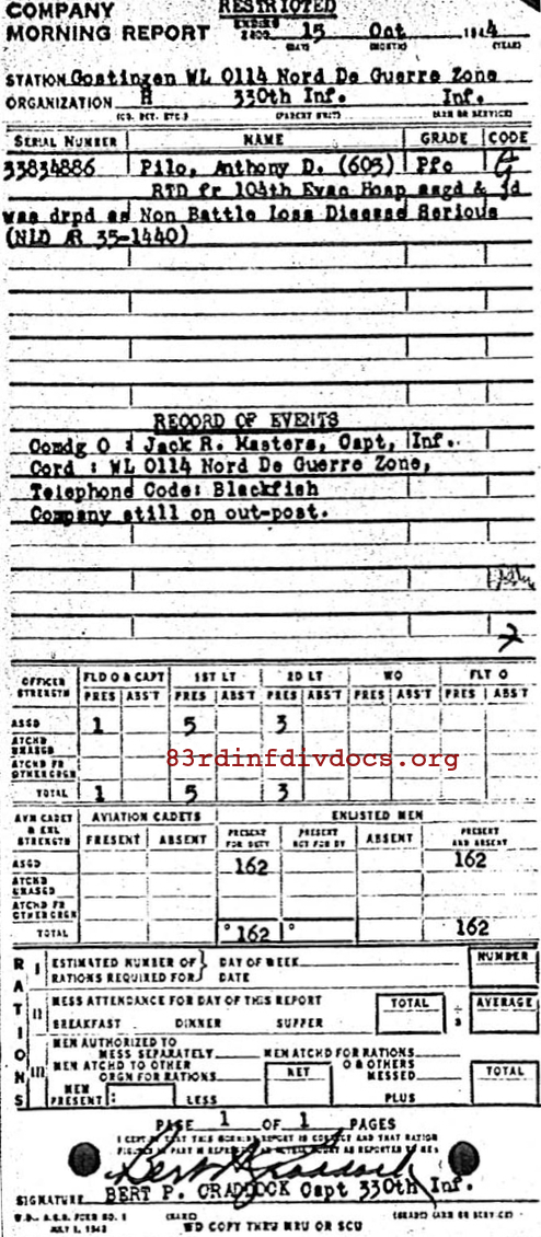 Morning report H/330 for October 15, 1944
