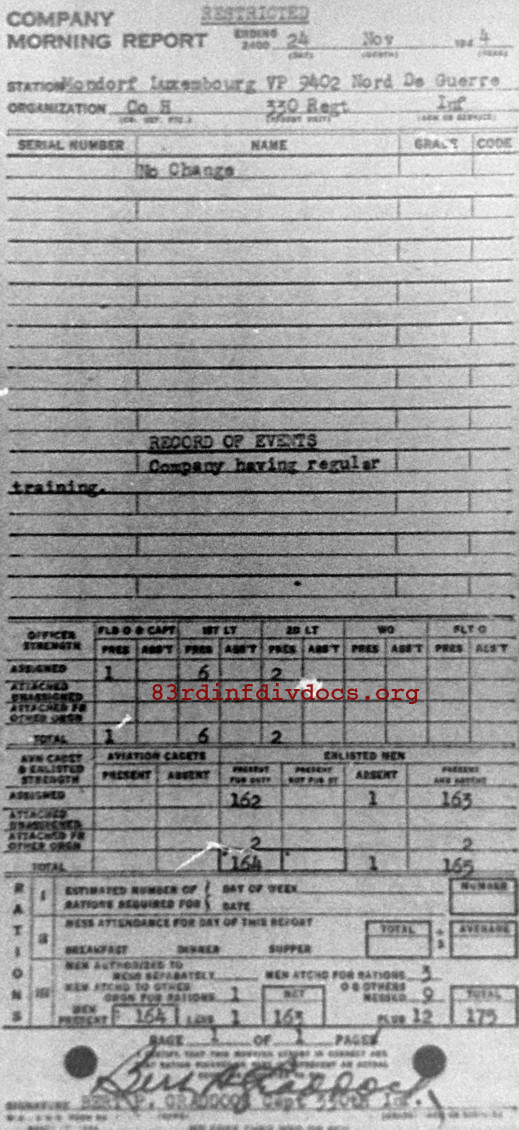 Morning report H/330 for November 24, 1944
