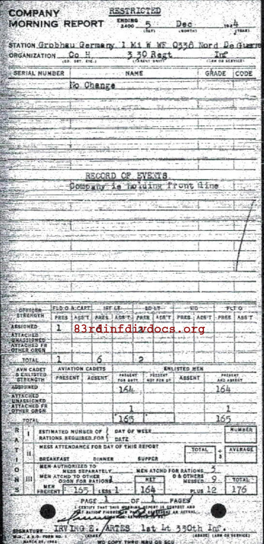 Morning report H/330 for December 5, 1944