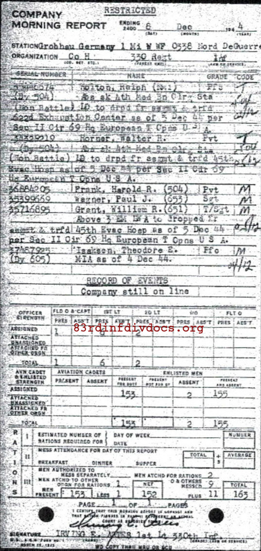Morning report H/330 for December 8, 1944