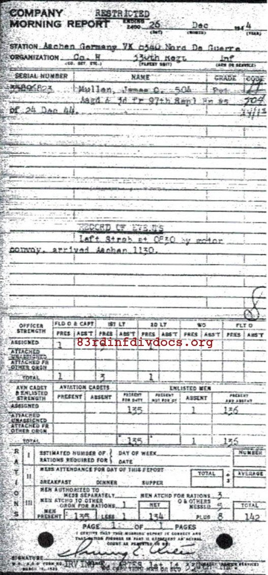 Left Strab at 0830 by motor convoy, arrived Aachen 1130.