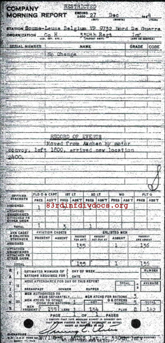 Morning report H/330 for December 27, 1944