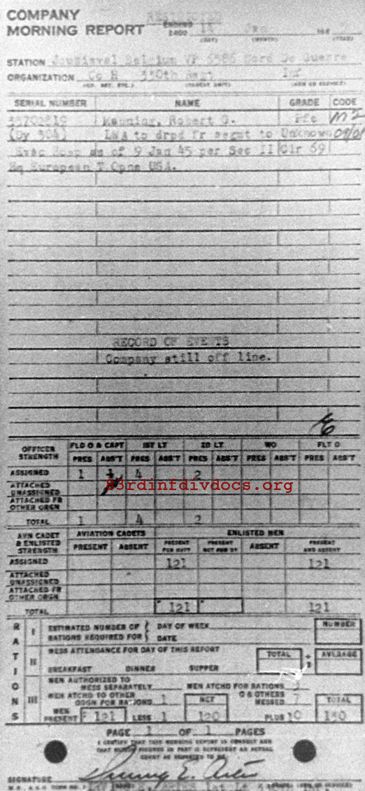 Morning report H/330 for January 14, 1945
