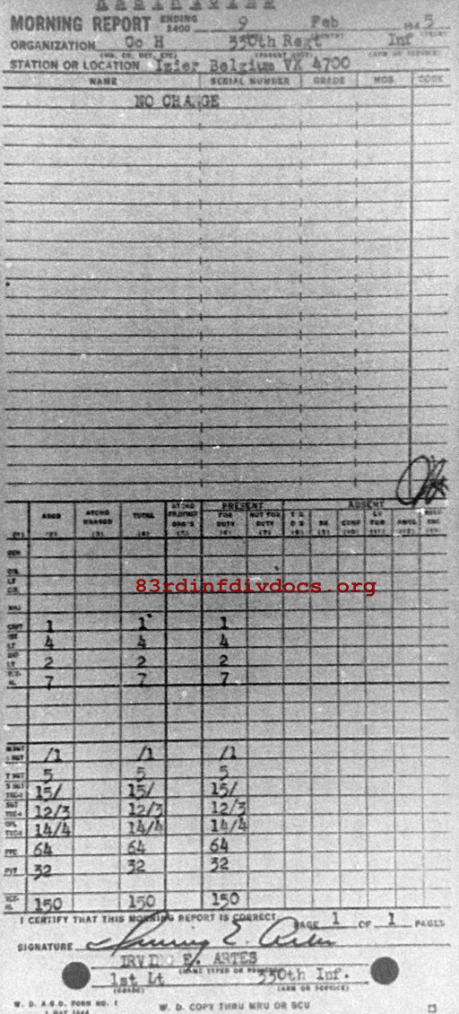 Morning report H/330 for February 9, 1945