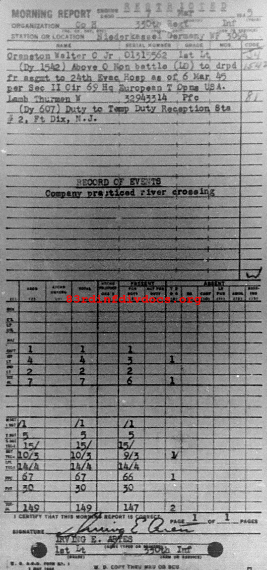 Morning report H/330 for March 7, 1945