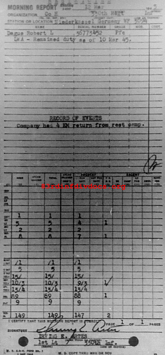 Morning report H/330 for March 12, 1945
