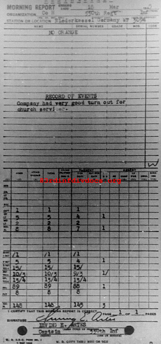 Morning report H/330 for March 18, 1945