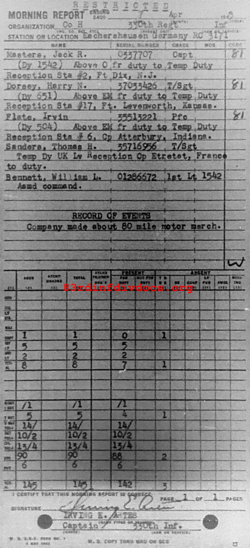 Morning report H/330 for April 7, 1945