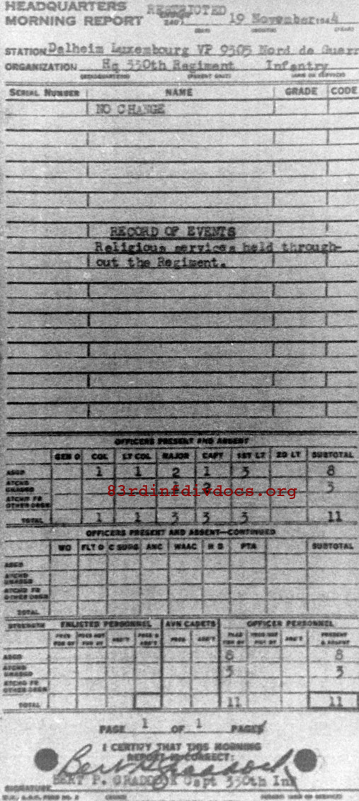 Morning report HQ/330 for November 19, 1944
