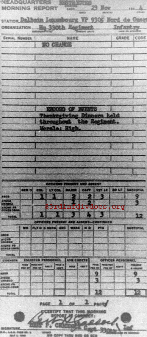 Morning report HQ/330 for November 23, 1944