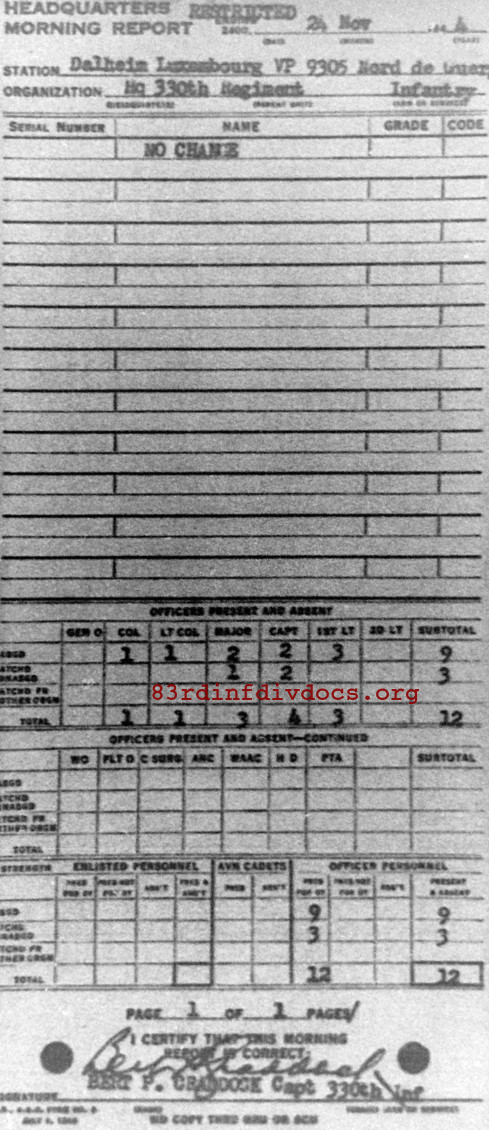 Morning report HQ/330 for November 24, 1944