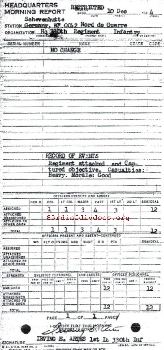 Regiment attacked and captured objective. Casualties heavy. Morale good.