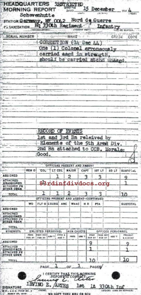 1st and 3rd Bn releived by elements of the 5th Armd Div. 2nd Bn attached to CCB. Morale good.