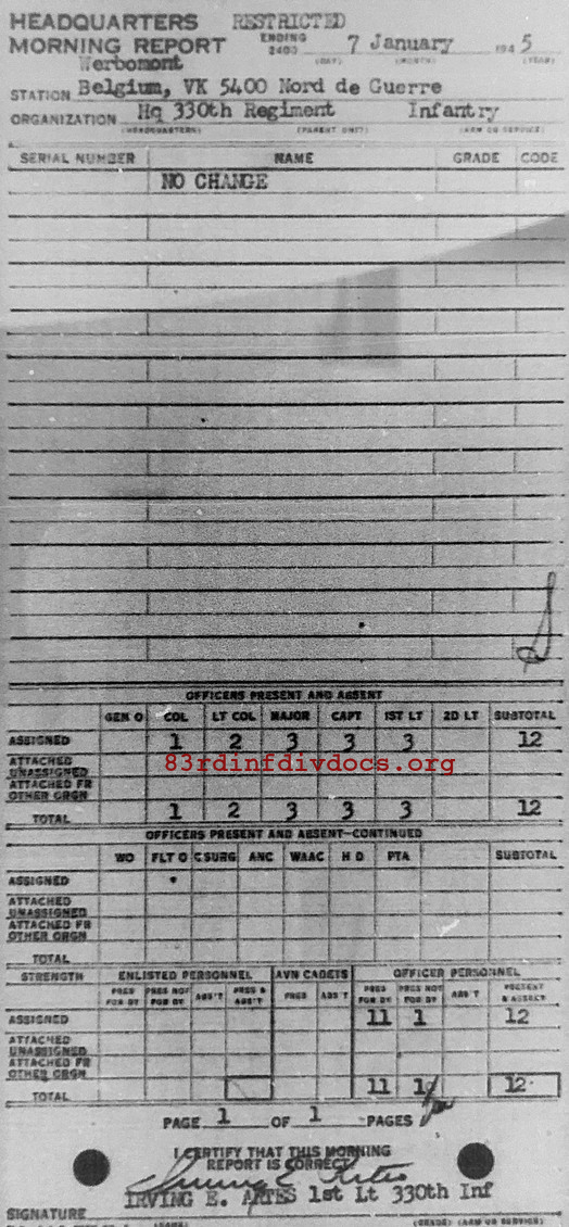 Morning report HQ/330 for January 7, 1945
