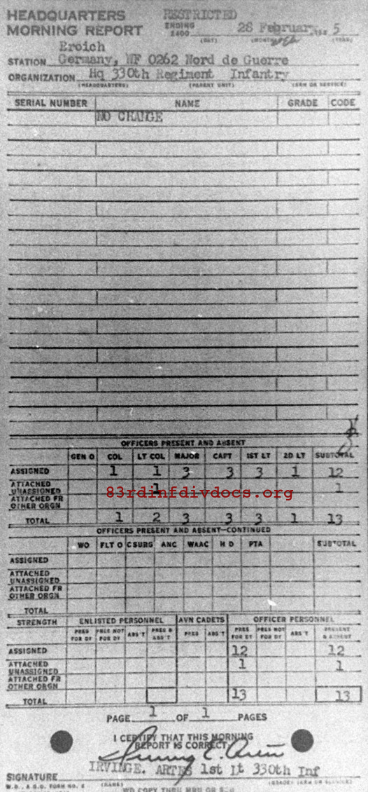 Morning report HQ/330 for February 28, 1945
