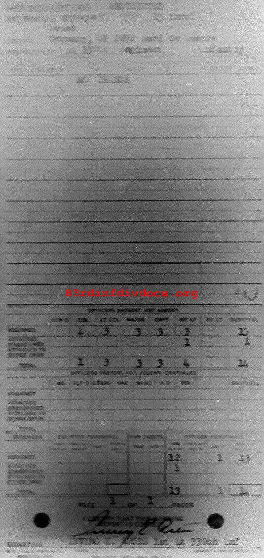 Morning report HQ/330 for March 15, 1945