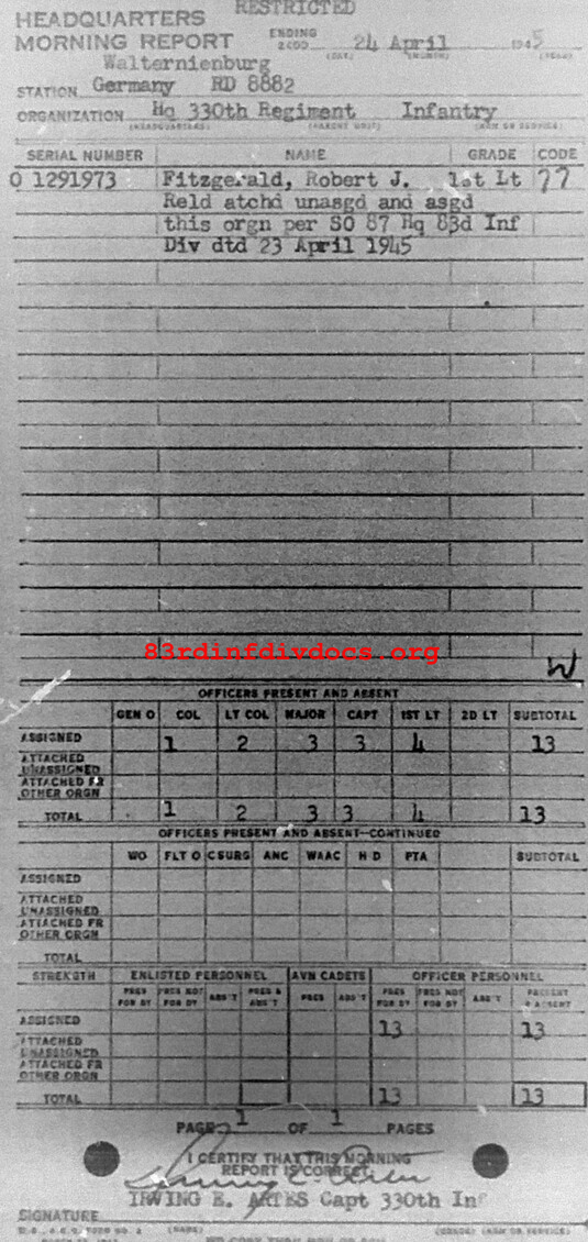 Morning report HQ/330 for April 24, 1945