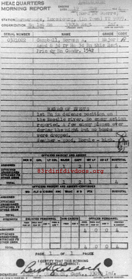 Morning report HQ1BN/330 for November 19, 1944