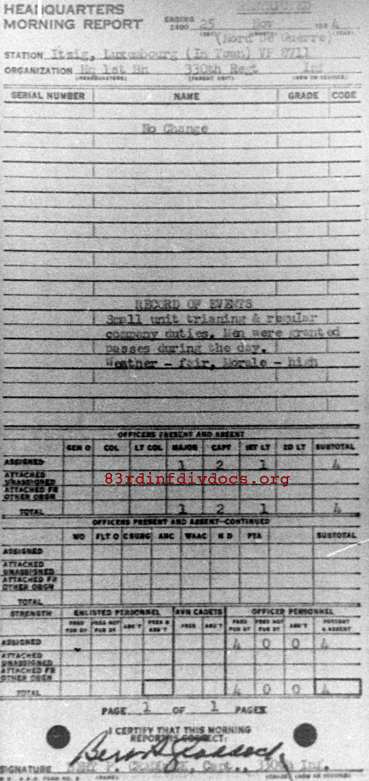Small unit trianing & regular company duties. Men were granted passes during the day. Weather - fair. Morale - high.
