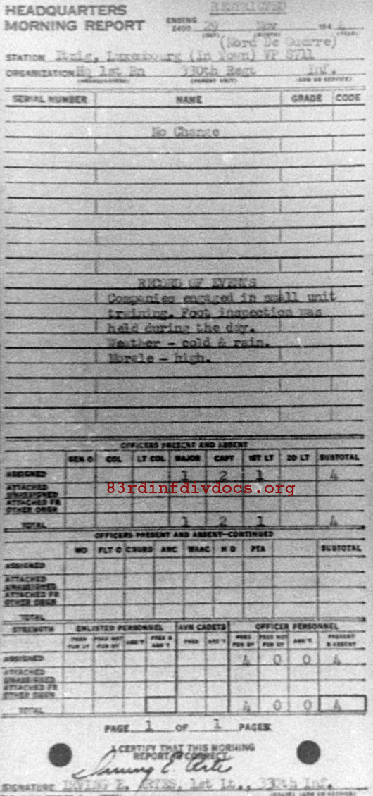 Companies engaged in small unit training. Foot inspection was held during the day. Weather - cold & rain. Morale - high.