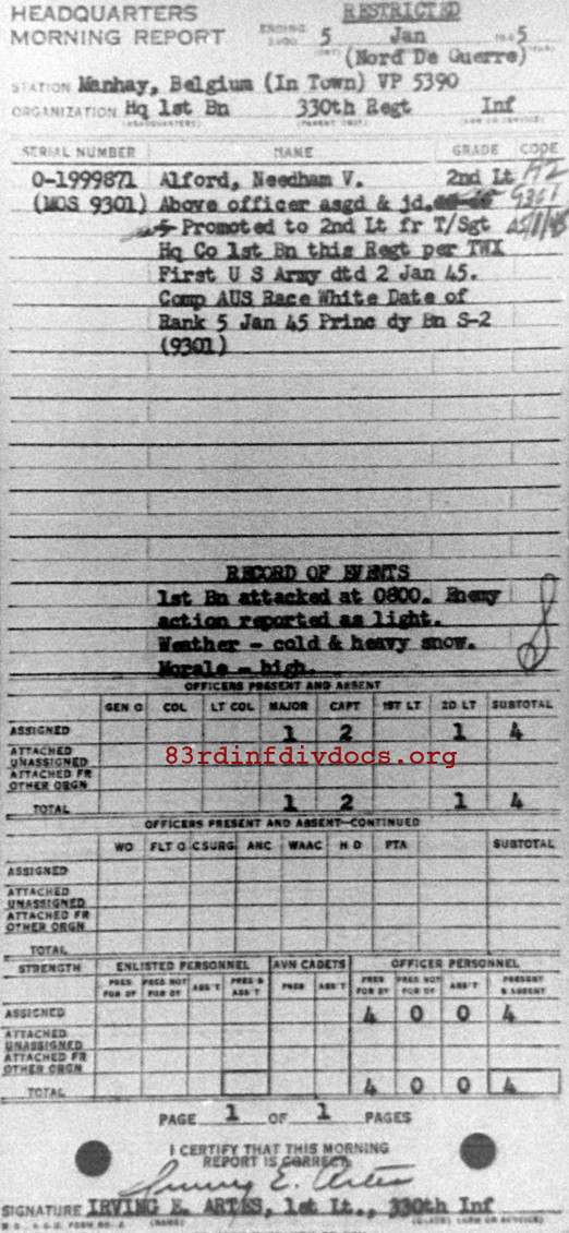1st Bn attacked at 0800. Enemy action reported as light. Weather - cold & heavy snow. Morale - high.