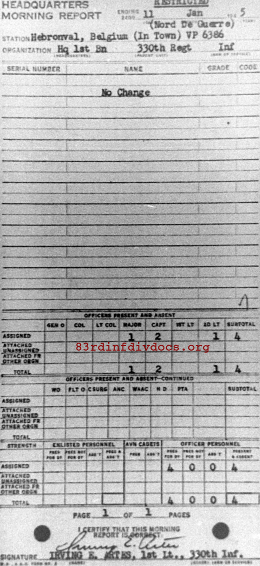 Morning report HQ1BN/330 for January 11, 1945