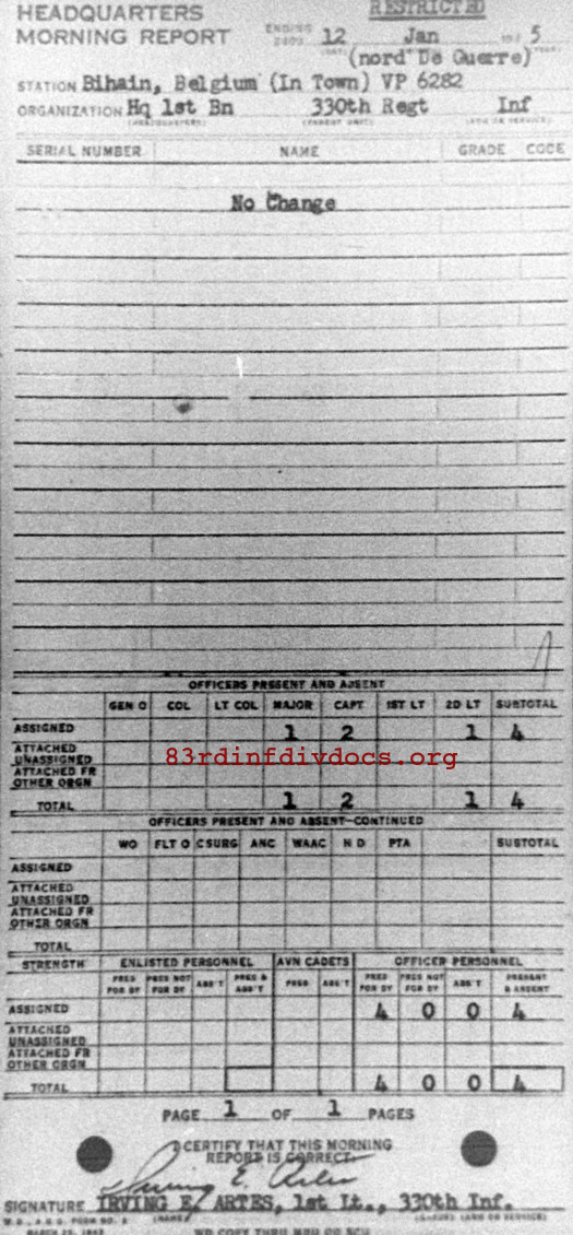 Morning report HQ1BN/330 for January 12, 1945