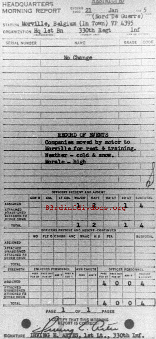Morning report HQ1BN/330 for January 21, 1945