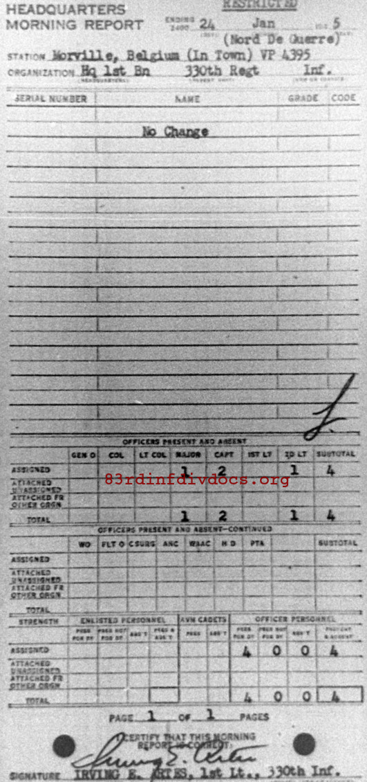 Morning report HQ1BN/330 for January 24, 1945