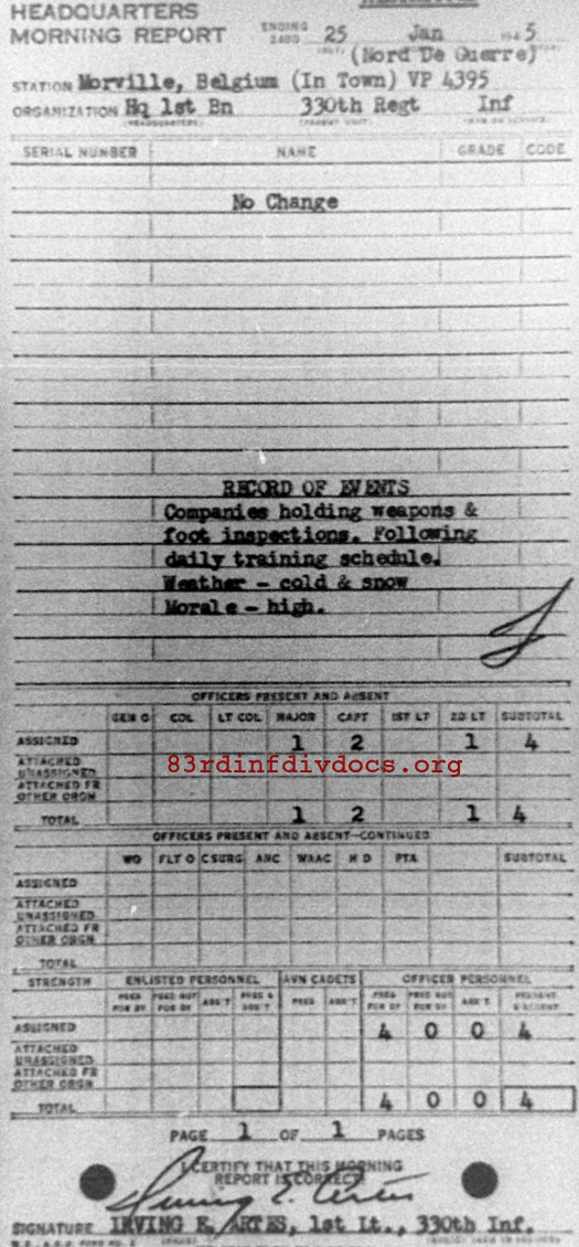 Morning report HQ1BN/330 for January 25, 1945