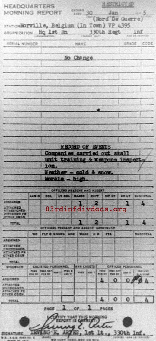Morning report HQ1BN/330 for January 30, 1945