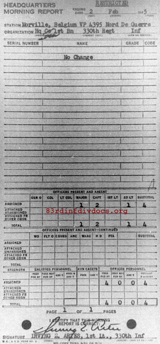 Morning report HQ1BN/330 for February 2, 1945