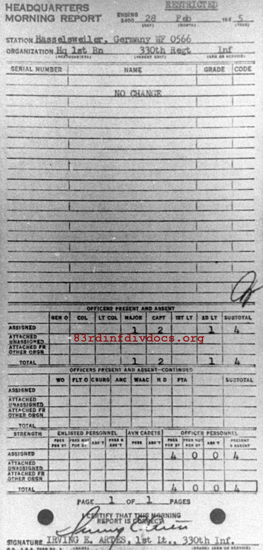 Morning report HQ1BN/330 for February 28, 1945