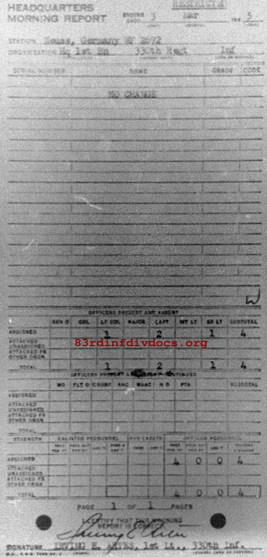 Morning report HQ1BN/330 for March 3, 1945