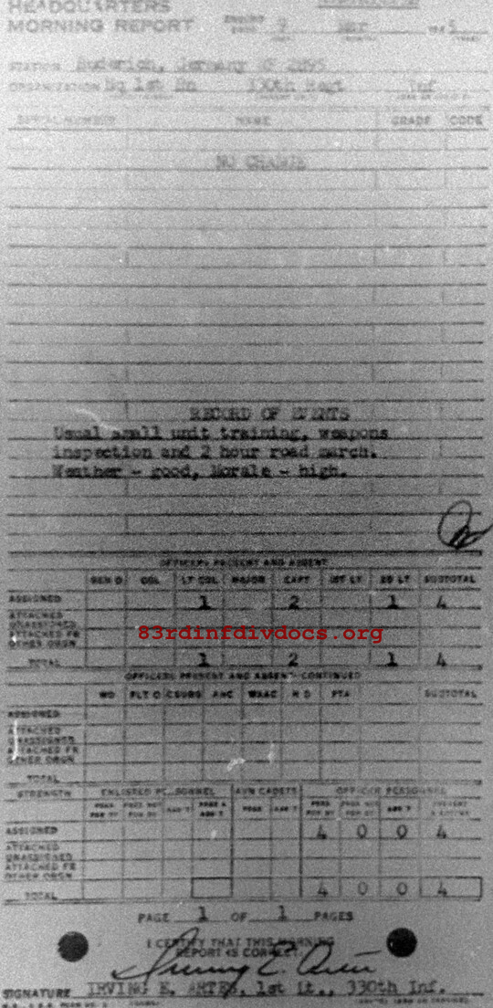 Morning report HQ1BN/330 for March 9, 1945