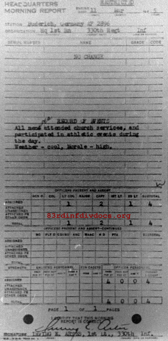 All men attended church services, and participated in athletic events during the day. Weather - cool. Morale - high.