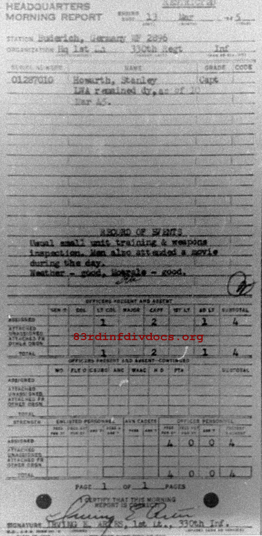 Morning report HQ1BN/330 for March 13, 1945