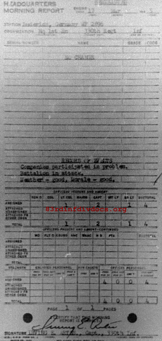 Morning report HQ1BN/330 for March 17, 1945