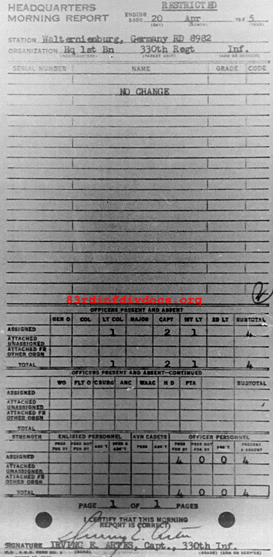 Morning report HQ1BN/330 for April 20, 1945