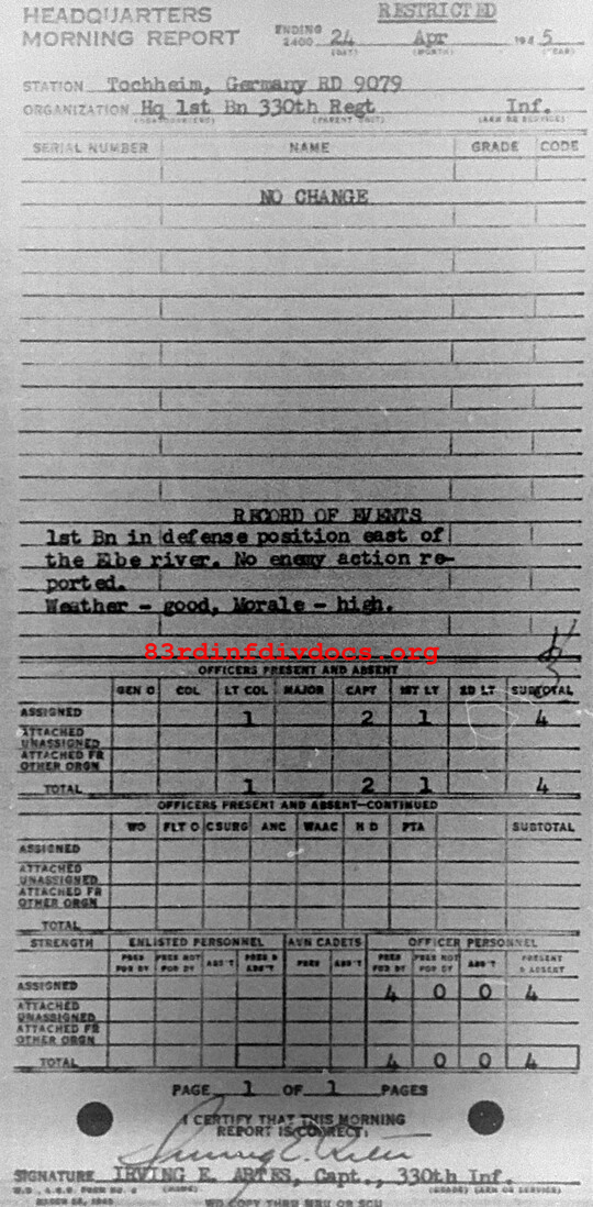 Morning report HQ1BN/330 for April 24, 1945