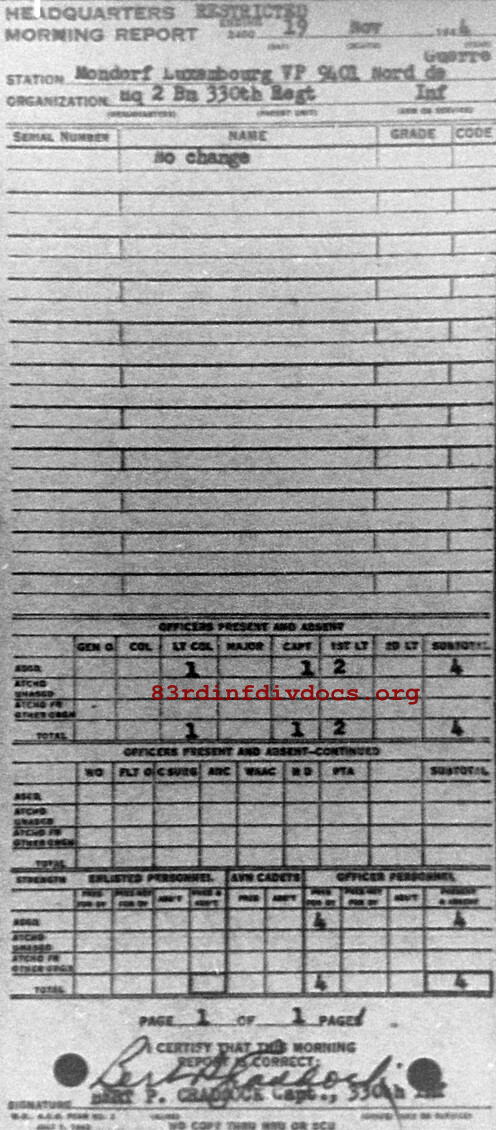 Morning report HQ2BN/330 for November 19, 1944