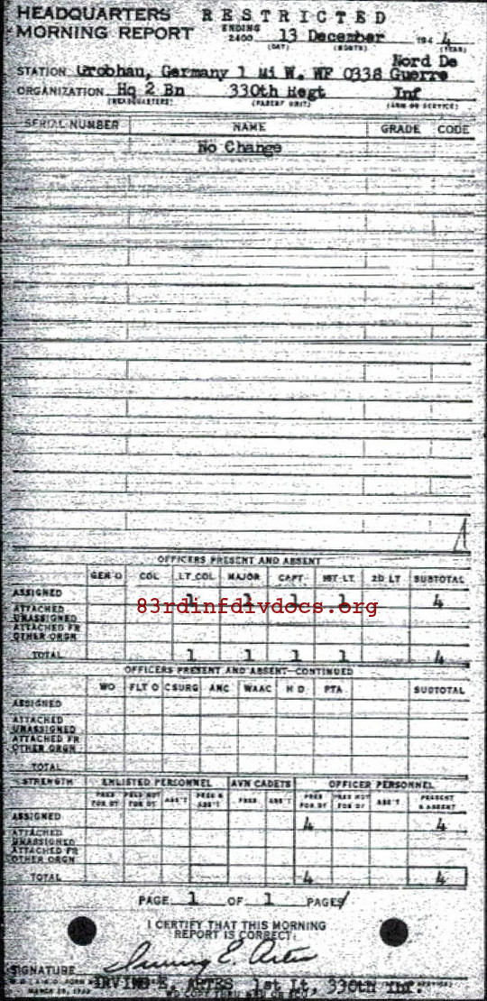 Morning report HQ2BN/330 for December 13, 1944