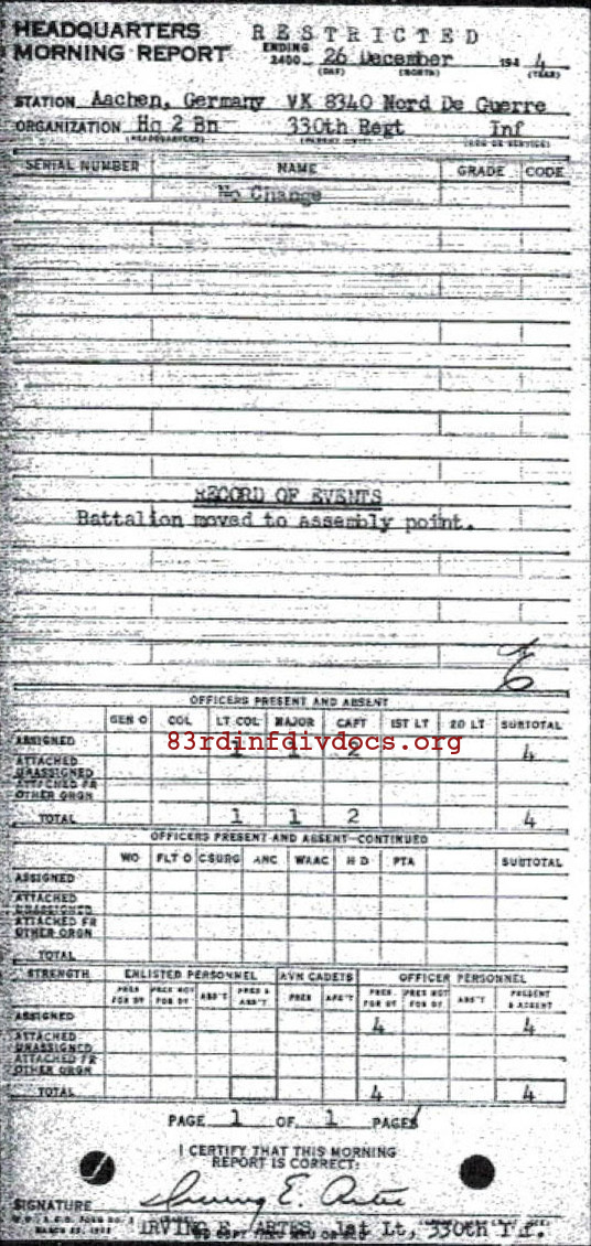 Morning report HQ2BN/330 for December 26, 1944