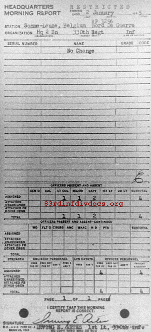 Morning report HQ2BN/330 for January 2, 1945