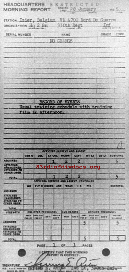 Morning report HQ2BN/330 for January 28, 1945