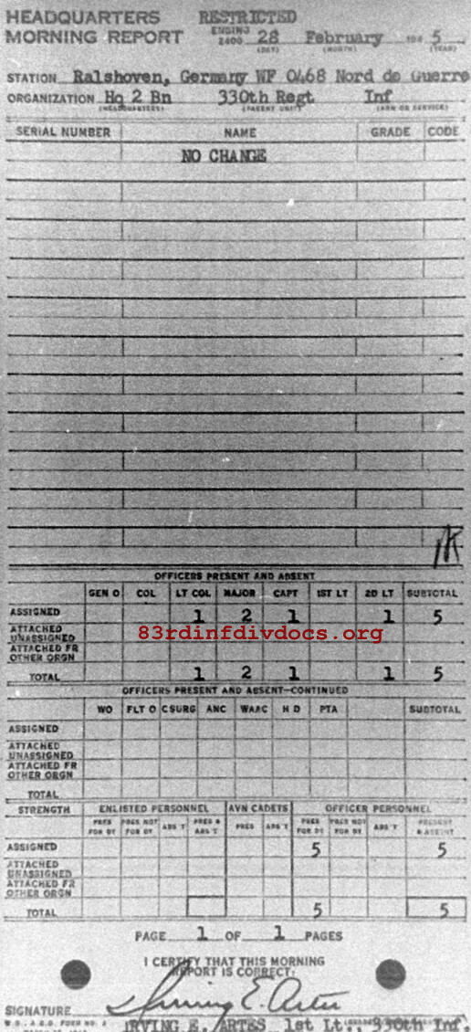 Morning report HQ2BN/330 for February 28, 1945